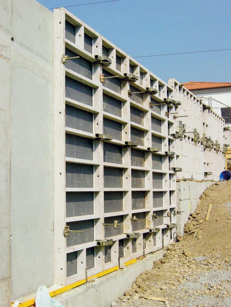 Белият модул от алуминий с дебелина 10 cm позволява да се реализират стени в малки, средни и големи сгради, като осигурява устойчивост на натиск на бетона от 60 kN/m2. Тъй като така или иначе е по-лека от стоманената форма, тя се характеризира със същите експлоатационни качества на железния кофраж и може лесно да се премества на ръка, без помощта на кранове или други повдигателни средства. Със същото сечение алуминиевите модулни форми могат да се комбинират със стоманените модулни форми чрез добавяне на аксесоари, като например изравнителна скоба или щифт и клин.